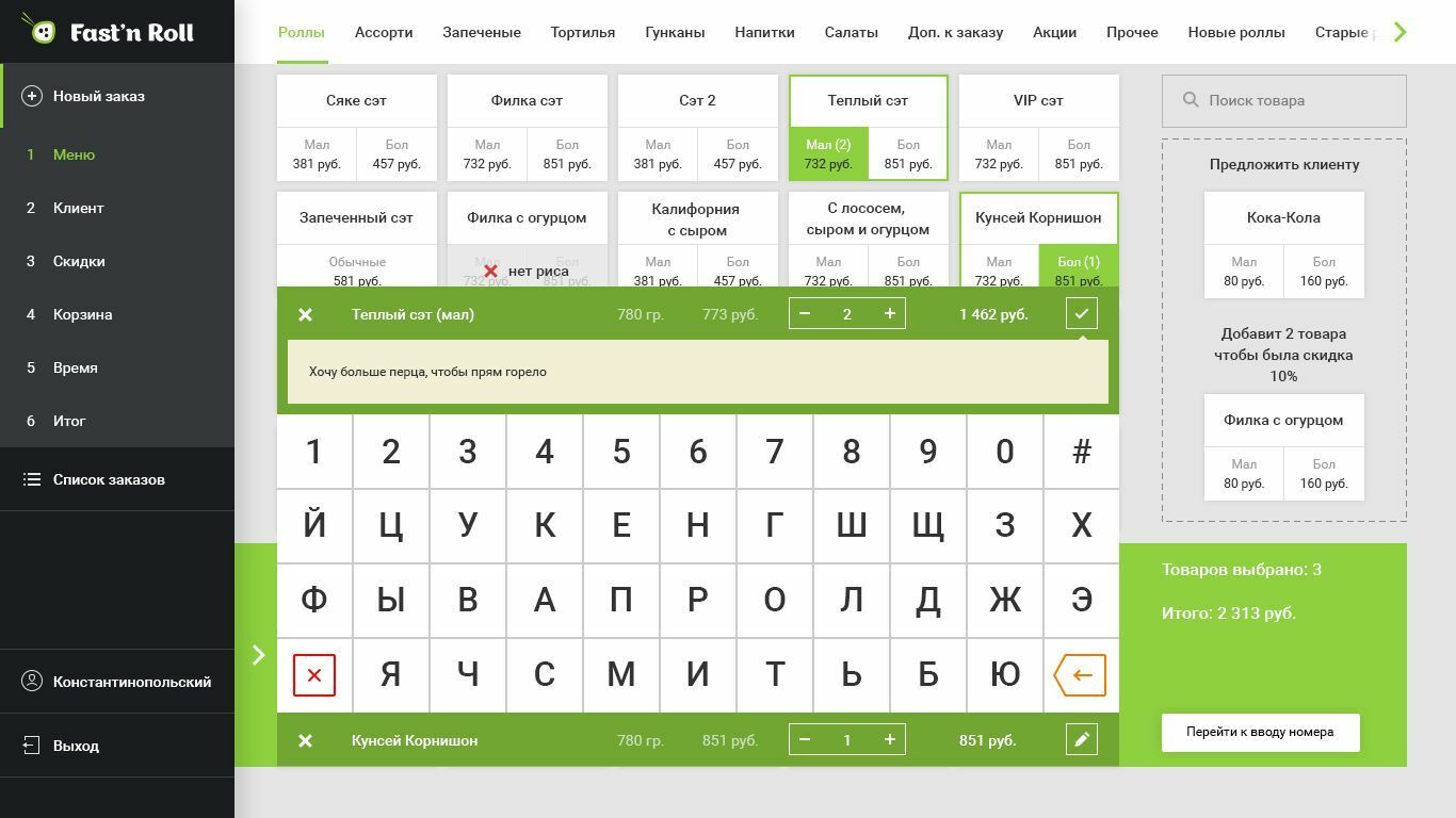 Для Fast'n Roll мы спроектировали уникальную CRM с 7 личными кабинетами для различных ролей пользователей — Оператор, Повар, Нарезчик, Упаковщик, Логист, Водитель, Заготовщик.